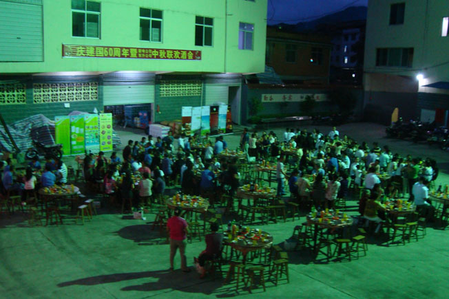 中秋佳節(jié),新味公司與東升公司聯歡酒會在新味公司操場舉行,并慶建國60周年,酒會現場投影露天電影,期間的抽獎活動把氣氛推向高潮,總經理黃細忠發(fā)表講話,對新味一年來取得的佳績表示肯定,并祝全體員工生活幸福,工作順利,中秋愉快!
