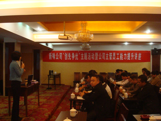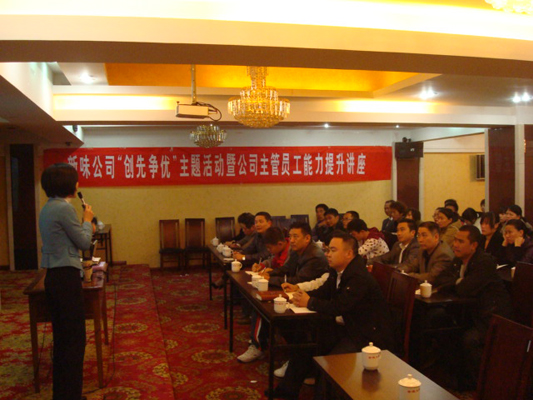 為進(jìn)一步推進(jìn)“創(chuàng)先爭優(yōu)”活動深入開展,11月27日,在市非公經(jīng)濟(jì)創(chuàng)先爭優(yōu)指導(dǎo)組的指導(dǎo)下,福建新味食品有限公司在福安市金源大酒店五樓舉行“創(chuàng)先爭優(yōu)”主題活動暨公司主管員工能力提升講座。此次講座以“組織創(chuàng)先進(jìn),黨員爭優(yōu)秀,企業(yè)有發(fā)展,員工得實(shí)惠”為指導(dǎo),旨在通過對主管員工的培訓(xùn),增加其精神食糧,拓展其見識面,為提升員工創(chuàng)造能力打下堅(jiān)實(shí)基礎(chǔ)。講座特邀深圳新高度企業(yè)咨詢有限公司張慧女士主講。講座分為企業(yè)唯一不變的就是改變、企業(yè)創(chuàng)造最佳成果的兩大思維、創(chuàng)造最佳成果的三大能力三個專題,深度詮釋了企業(yè)創(chuàng)新的重要意義及創(chuàng)新思維的培養(yǎng)?,F(xiàn)場氣氛活躍,通過理論講解、現(xiàn)場討論等多種形式,極大地調(diào)動了參會人員的積極性,公司員工紛紛表態(tài)要將“創(chuàng)新是企業(yè)的生命力”的理念貫穿于工作始終,講座收效良好。共有39名該公司主管員工參加了此次講座。
