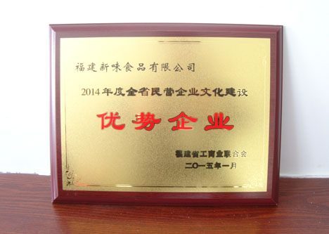 熱烈祝賀“福建新味食品有限公司”被福建省工商業(yè)聯(lián)合會評為“2014年度全省民營企業(yè)文化建設優(yōu)勢企業(yè)”稱號。