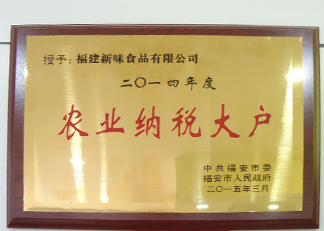 3月5日,福安市表彰2014年度納稅大戶,經(jīng)過一年的努力福建新味食品有限公司再次榮登納稅大戶領(lǐng)獎(jiǎng)臺(tái)。展望未來,新味公司將繼續(xù)奉行“以農(nóng)為友,以民為本”的理念,用獨(dú)特的企業(yè)文化精心打造市場(chǎng),憑著優(yōu)質(zhì)的產(chǎn)品及不斷創(chuàng)新的經(jīng)營(yíng)理念,腳踏實(shí)地地將企業(yè)做強(qiáng)做大,繼續(xù)為福建山區(qū)農(nóng)村的經(jīng)濟(jì)發(fā)展和農(nóng)民脫貧致富,為建設(shè)海峽西岸經(jīng)濟(jì)區(qū),構(gòu)建和諧社會(huì)作出新的貢獻(xiàn)。